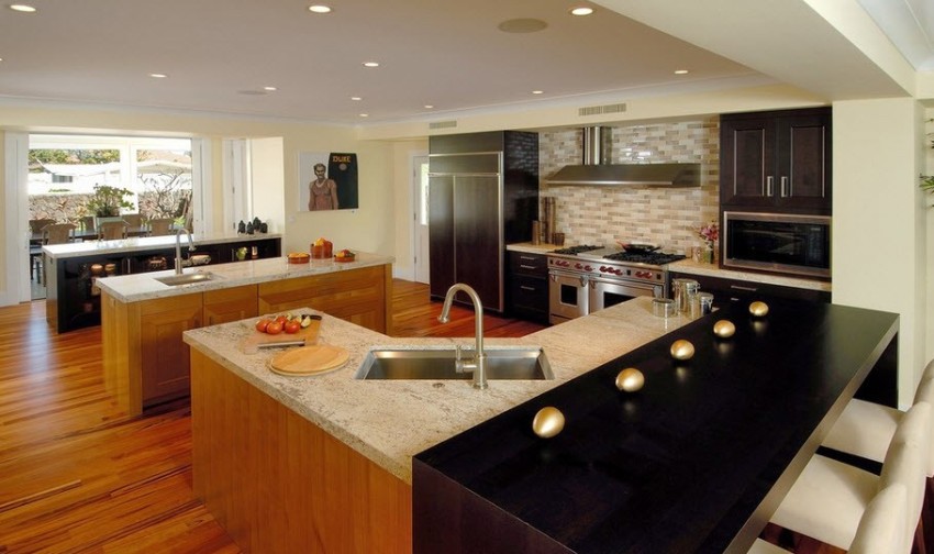 It should be said right away that corner models of sinks are most often installed in kitchens that have a layout in the form of the letter "L". This method of placing a kitchen unit is characterized by maximum functionality with a minimum use of the usable area.