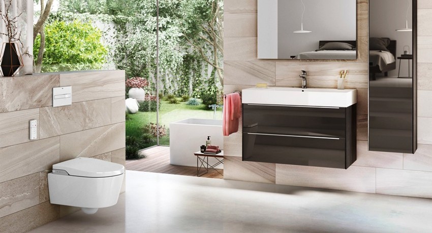 The progressive products of the Geberit range are equipped with water heating functions with individual temperature control