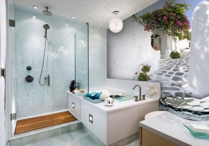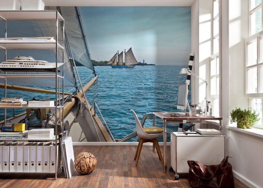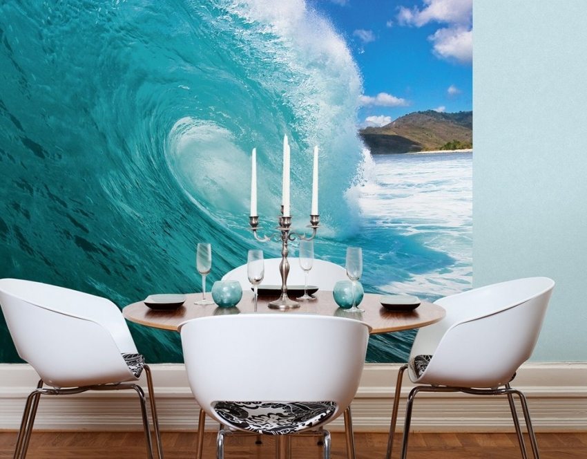 Panoramic wallpaper changes the room beyond recognition, "pushes" its boundaries, contributes to the very 3D effect that creates a true illusion of a realistic image - most often it is an urban, rural or natural landscape, clear blue or evening sky, ocean.