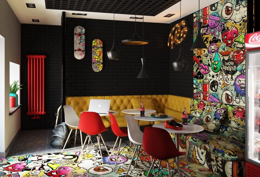 3D wallpaper in the design of restaurants and cafes