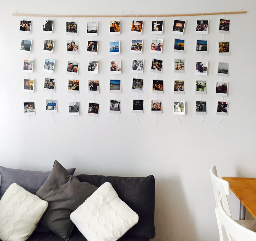 To decorate the wall with photographs, you can also use special stretchers, which will give the composition an equally effective look, as with framed photographs.