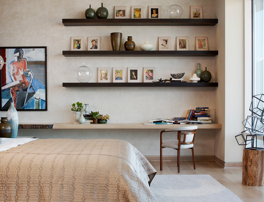 The shelf is a harmonious combination of beauty and practicality. They do not take up much space, while being quite roomy. With their help, you can create a mini-library. Particular benefit from shelves in the kitchen... So spices, bottles and glasses will always be at hand.