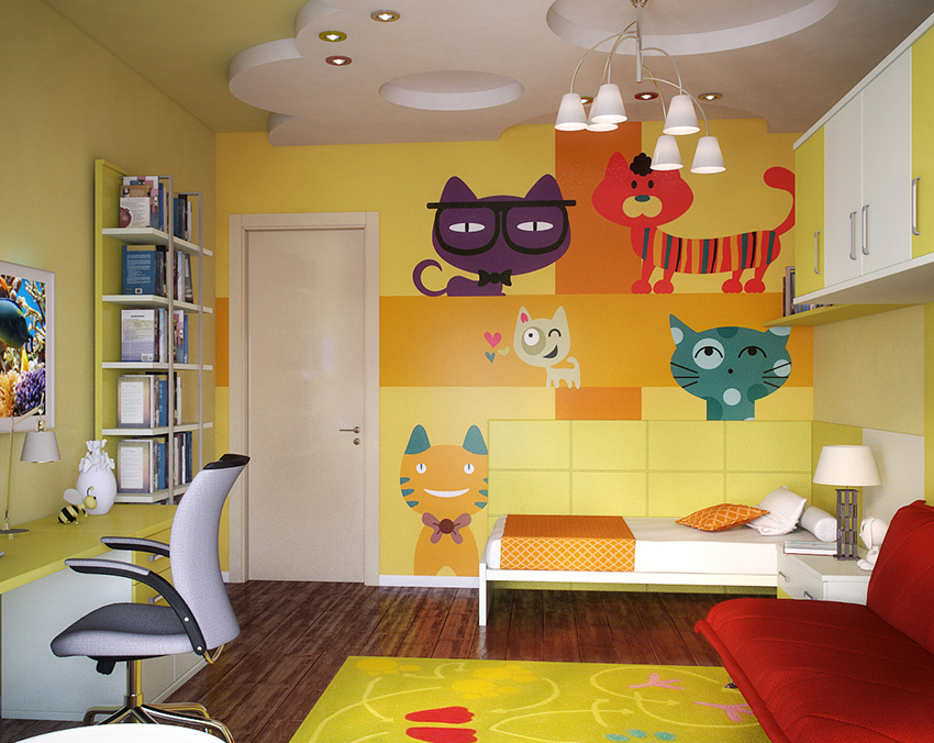 A girl's room should be filled with accessories and delicate details. The walls can be decorated with paintings of flowers and pets. For a youthful room, a sporty style is suitable, with photographs of famous idols and plot compositions. In the design of the room for teenagers located on the top floor of the house, it is ideal chalet style.
