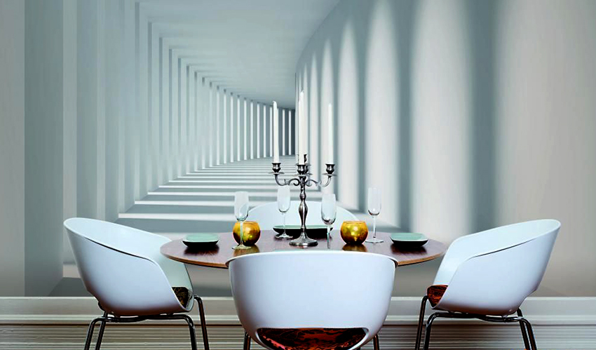 Helpful advice! To enhance the effect of the image receding into the distance, you can use a mirror or mirror surfaces located opposite the wallpaper.