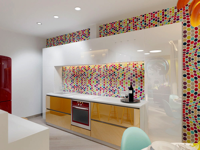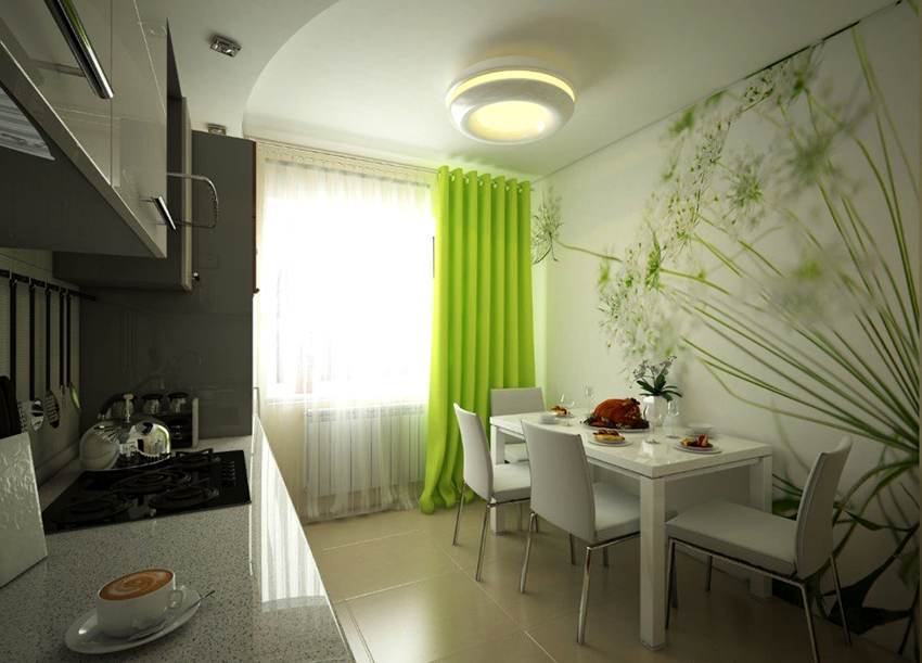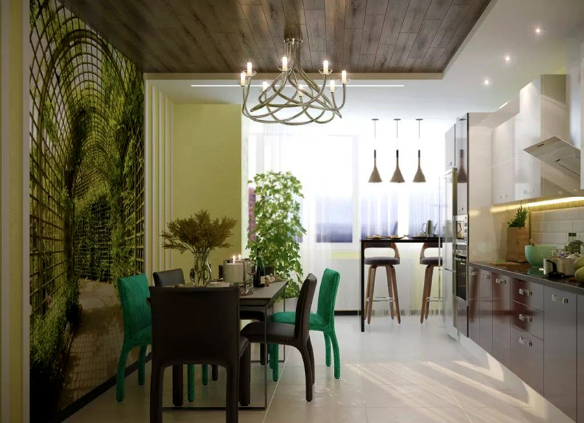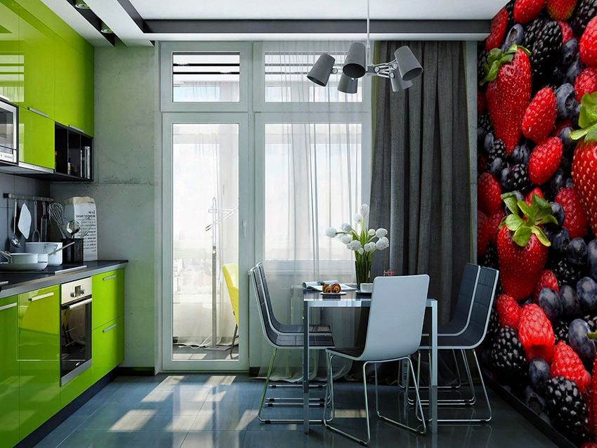 - 6 Color solutions for photo wallpaper in the kitchen: photo of the interiors of the room