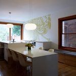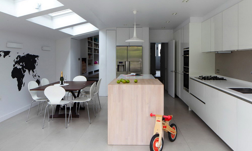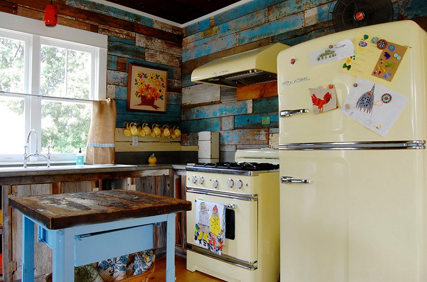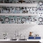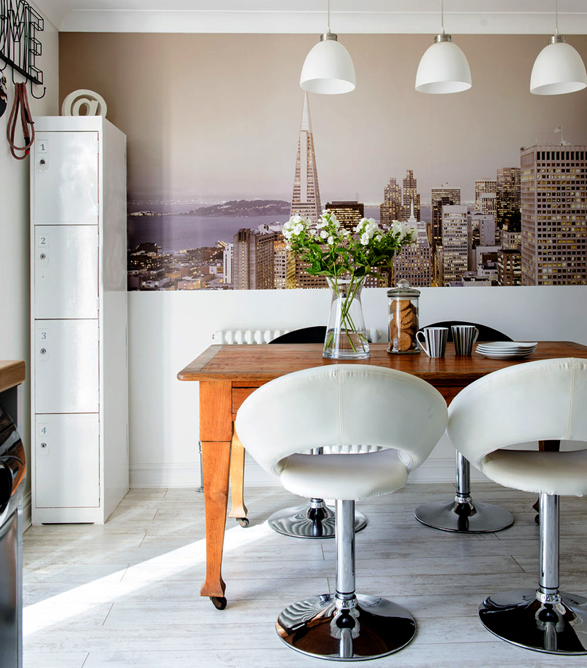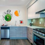 - 9 Marine and urban theme of wallpaper in a small kitchen