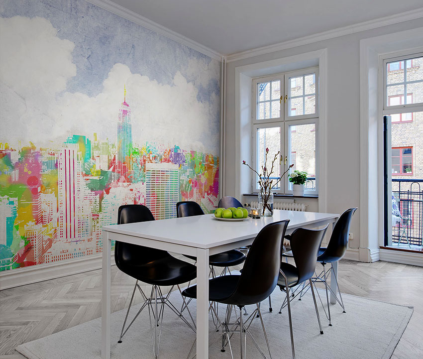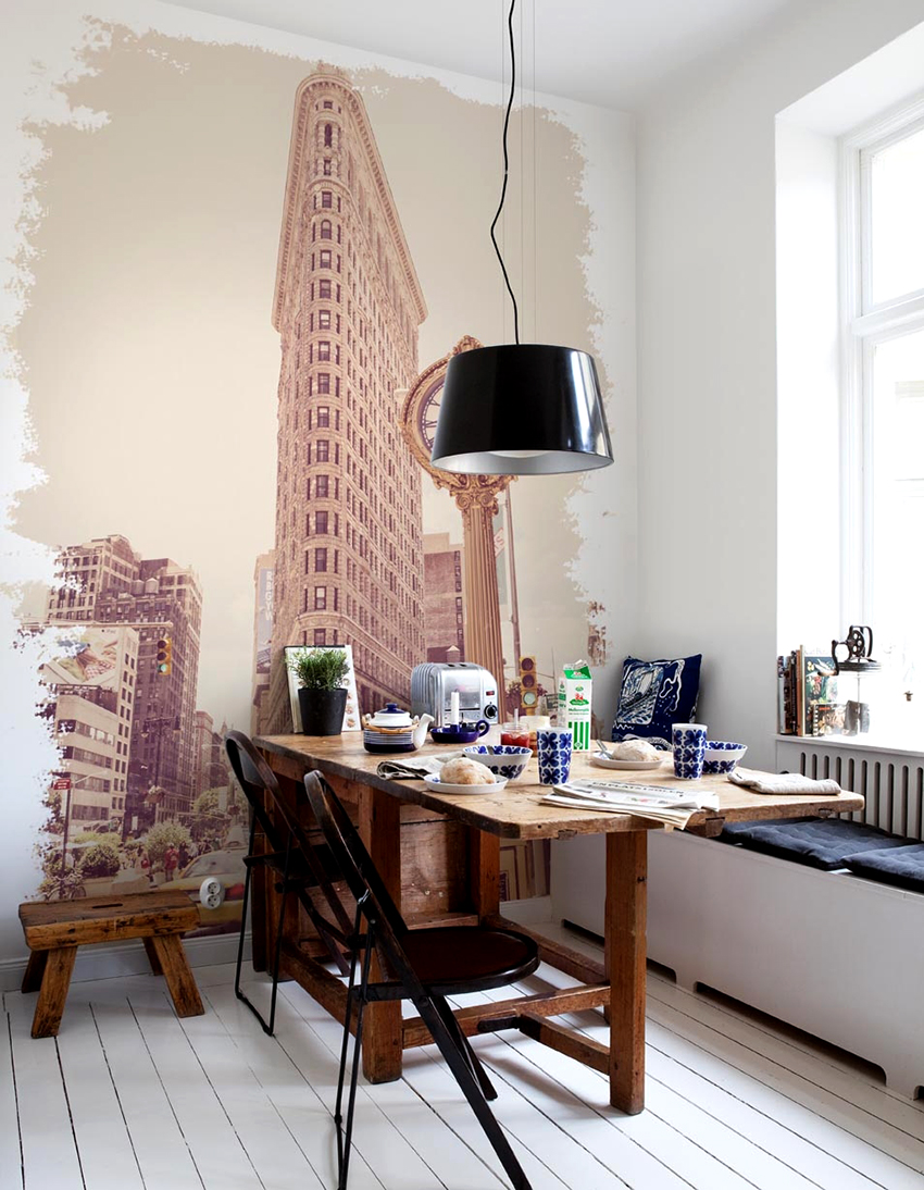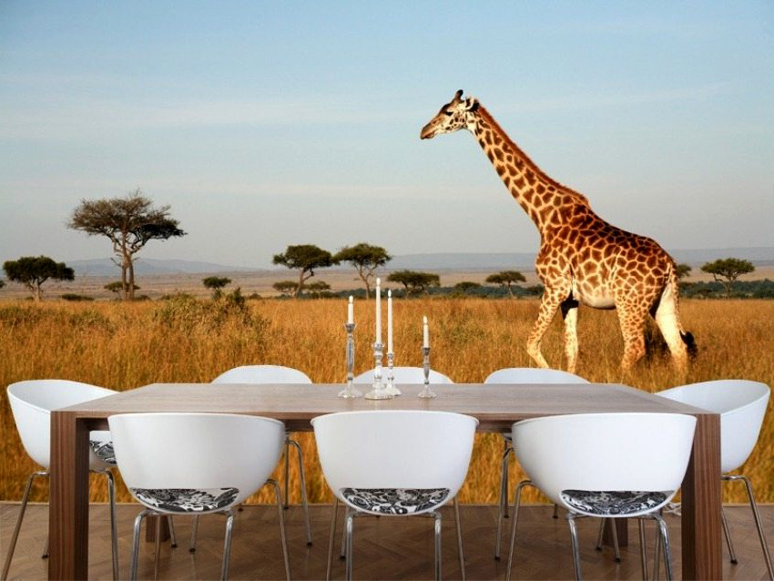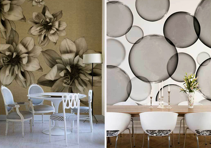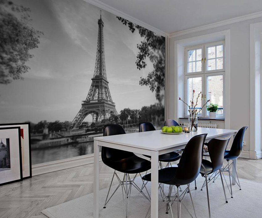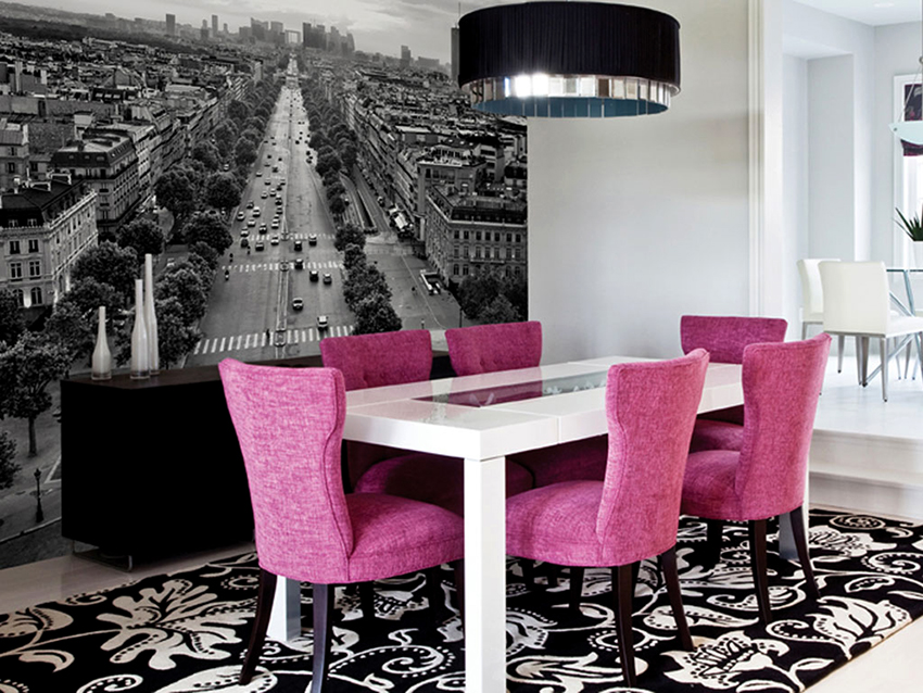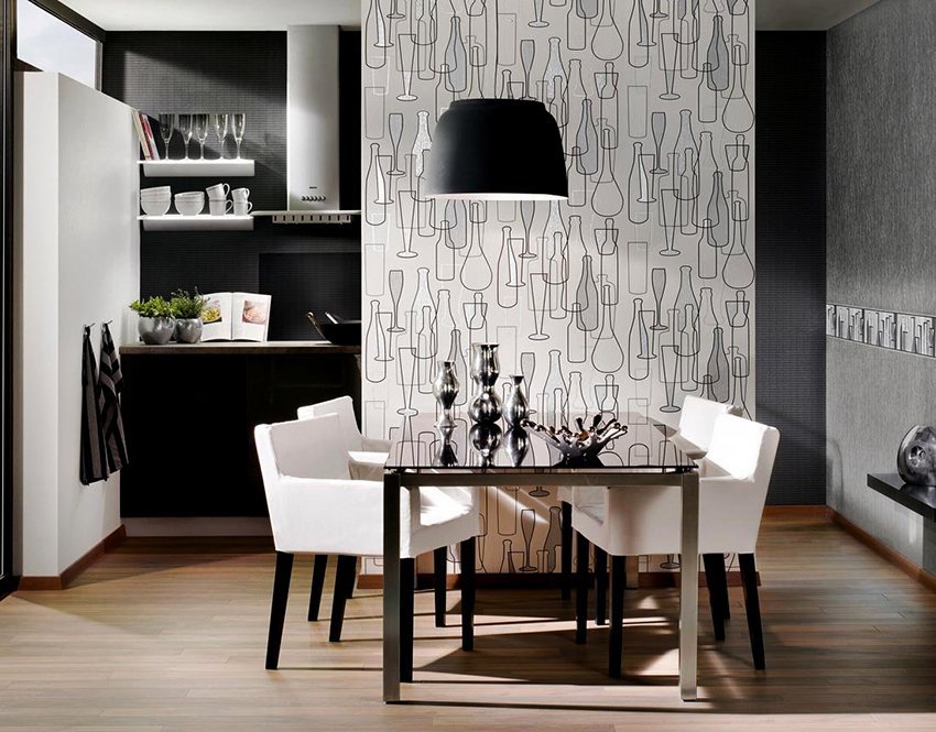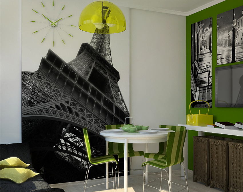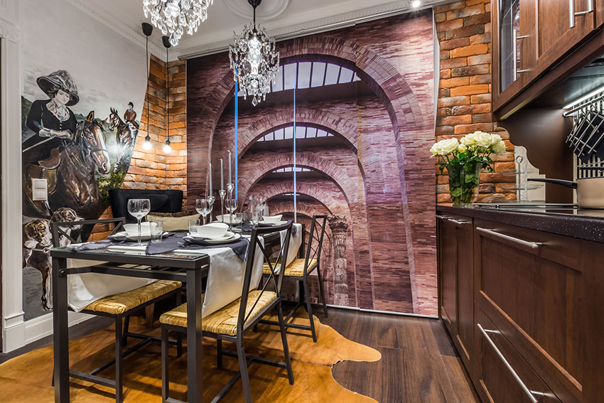There are many options for wallpaper for the dining room allows you to realize any fantasy: to be at the gates of an ancient castle, to be transported to the foot of the Eiffel Tower or to find yourself in the ballroom of a luxurious royal palace.