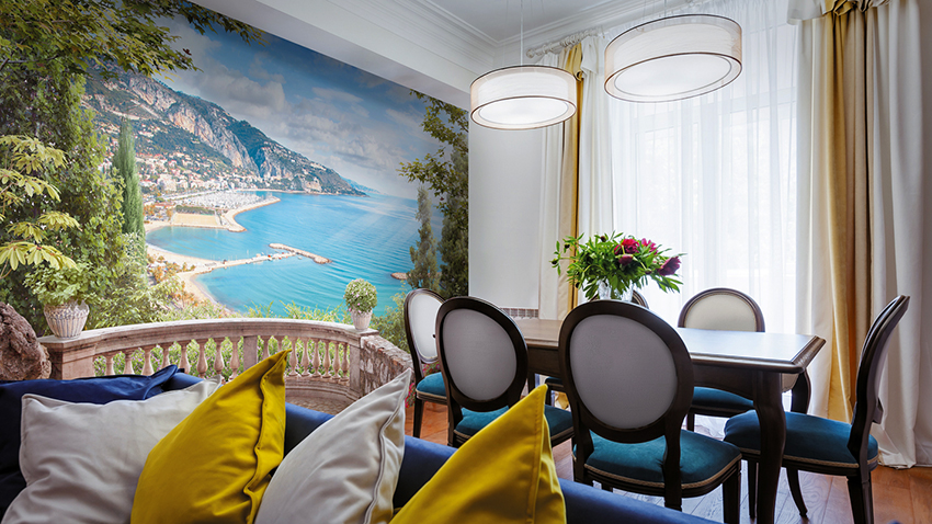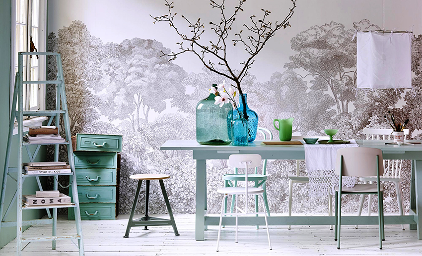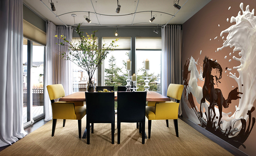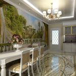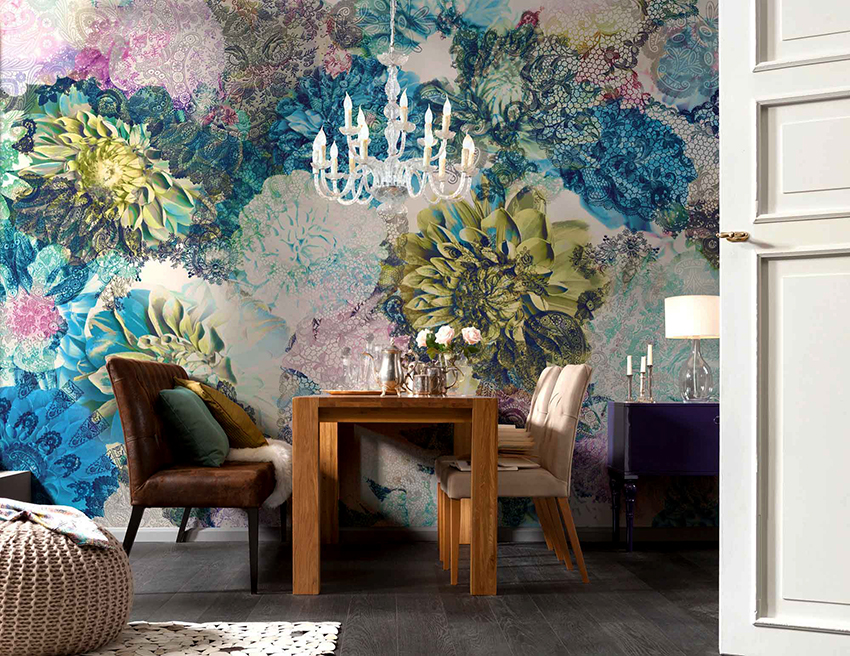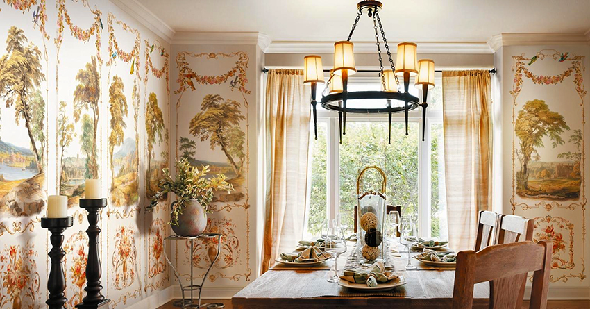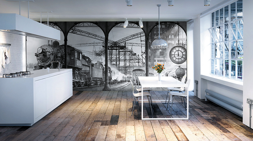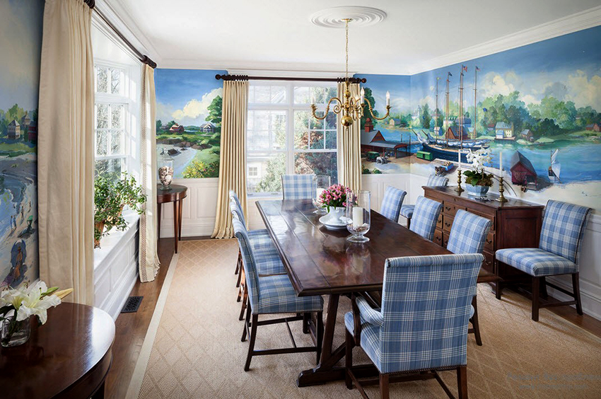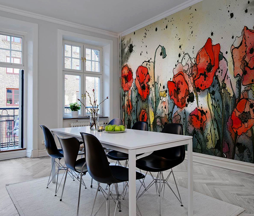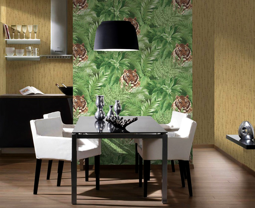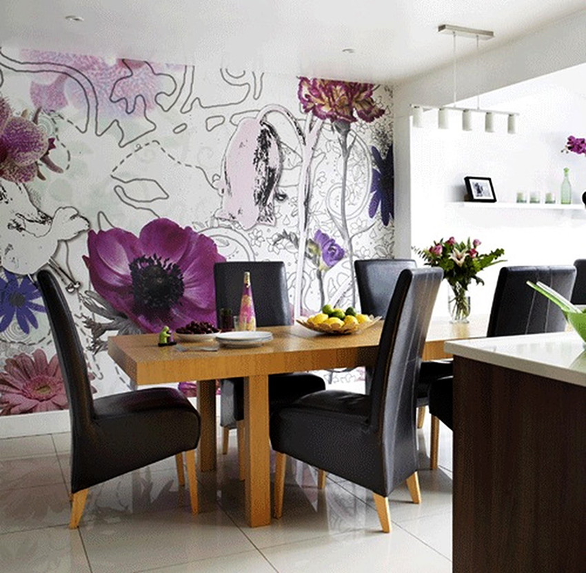 There are many options for wallpaper for the dining room allows you to realize any fantasy: to be at the gates of an ancient castle, to be transported to the foot of the Eiffel Tower or to find yourself in the ballroom of a luxurious royal palace.