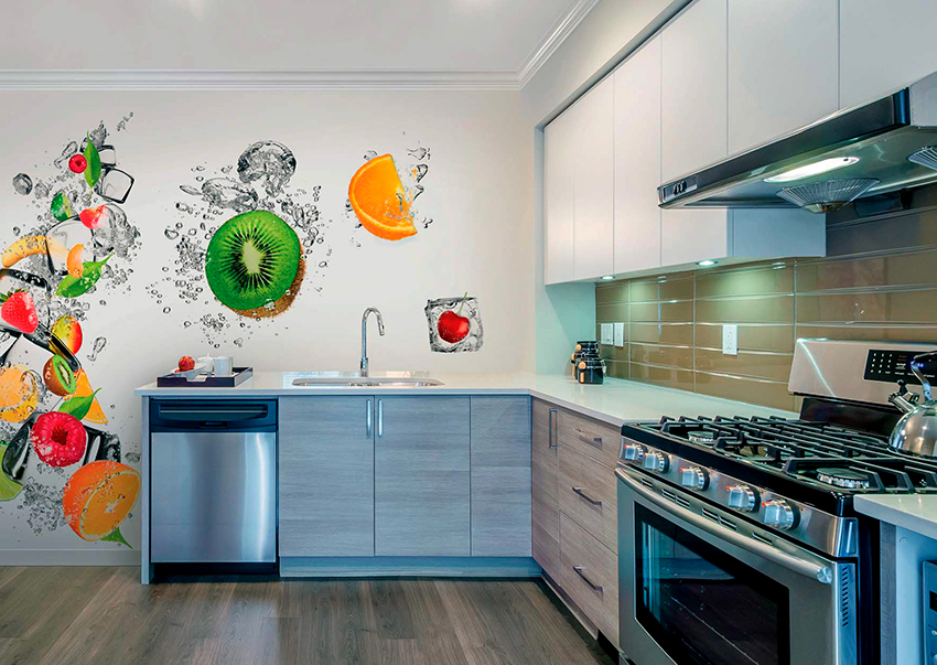 Photo wallpaper for the kitchen: the main characteristics of the coating