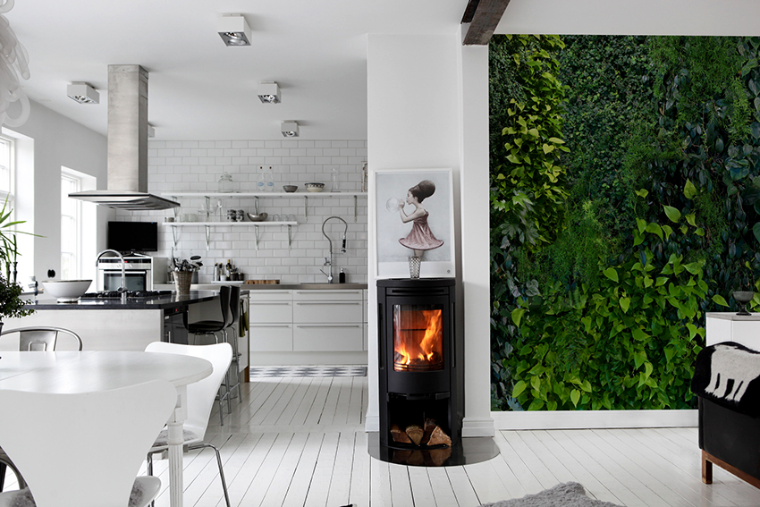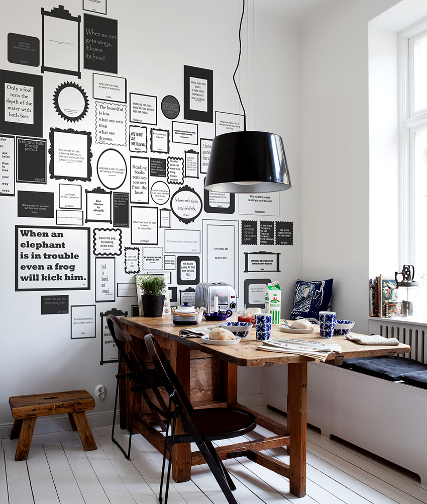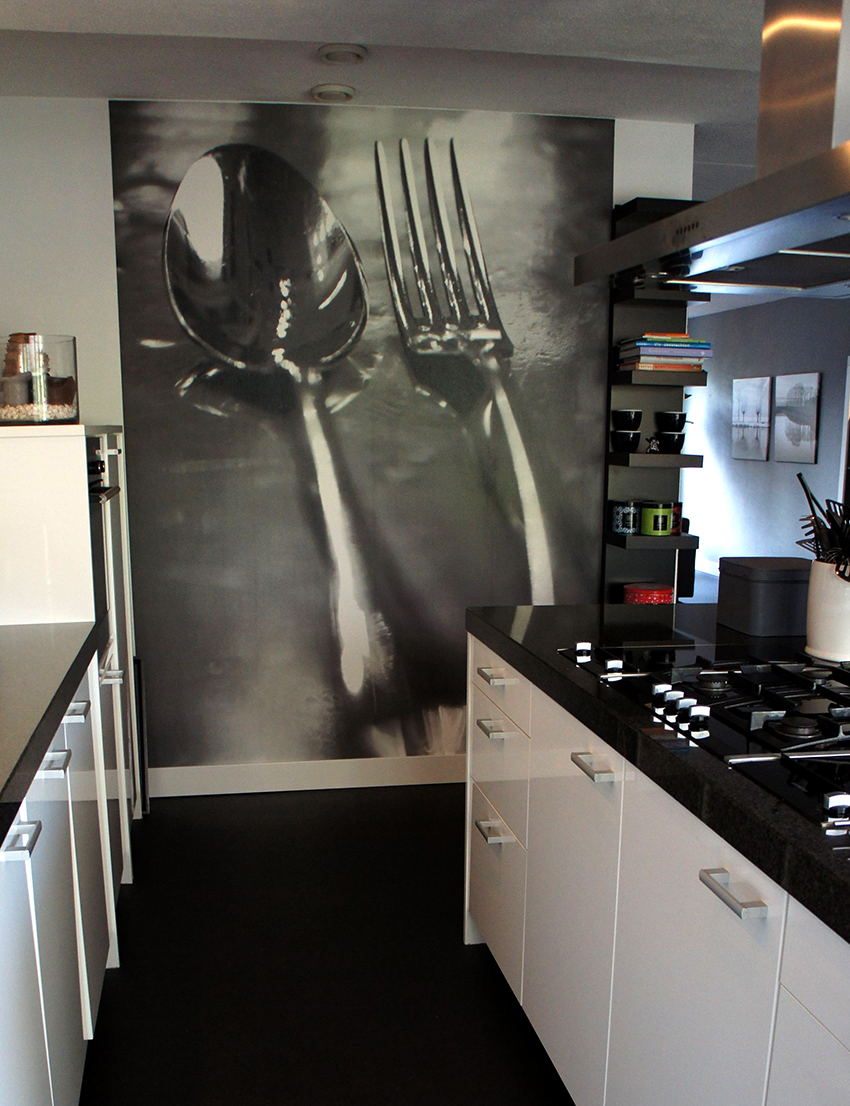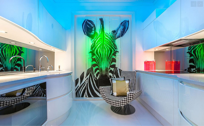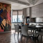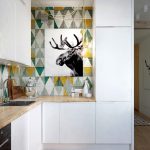 For a polychrome interior, monochrome or black-and-white coatings are ideal. This image will become an accent in the kitchen.