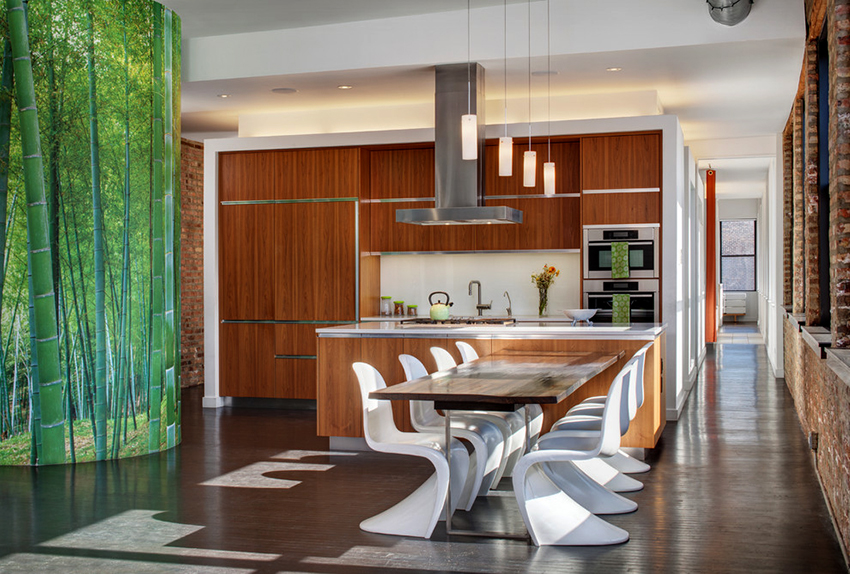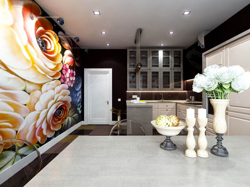 Color solutions for photo wallpaper in the kitchen: photo of the interiors of the room