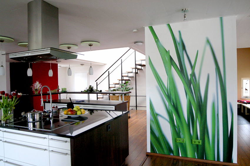 Photomurals on a natural fiberglass base are not afraid of temperature changes and increased moisture