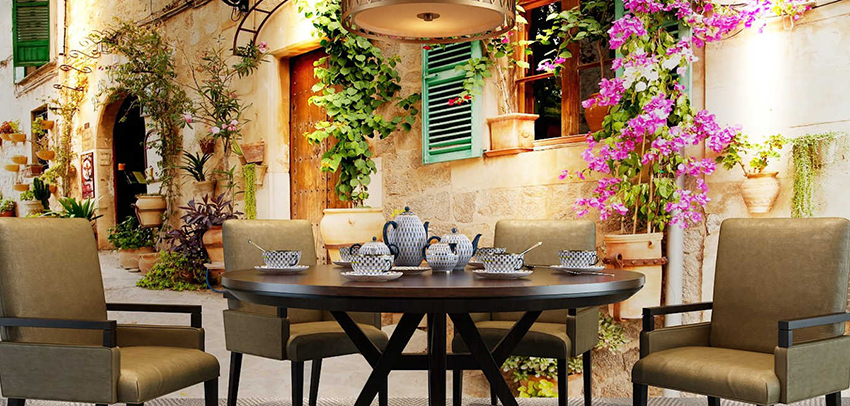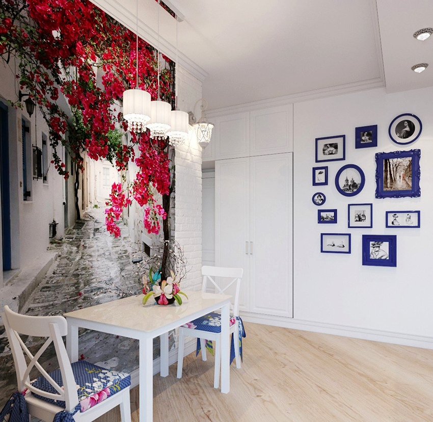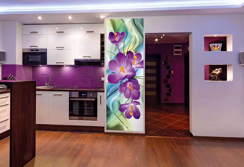 A rustic Provence kitchen should be decorated in light pastel colors such as white, cream, purple, gray and green. Photo wallpapers with small single flowers or compositions of purple and pink shades are capable of breathing life into a sleeping environment. An image of lavender works best. Any floristic theme, where small flower compositions prevail, will organically fit into the Provence cuisine. Photo wallpaper for the kitchen, illustrating the open terraces of the cafe, summer areas of the restaurant, will also organically fit into the rustic interior.