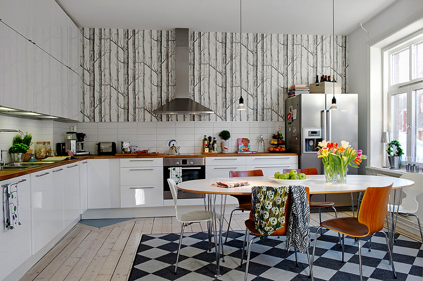Wallpaper design for the kitchen: photos of successful interior solutions