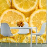 The color of wallpaper in the kitchen has a certain effect on the human psyche. For people who are overweight, it is better to choose products in cold blue or light blue colors.Those who complain about a lack of appetite and families with children are advised to use wallpaper in warm colors. The ideal option in this case would be lemon, peach and coral tones. Such rich and “mouth-watering” colors should be combined with kitchen elements and accessories.