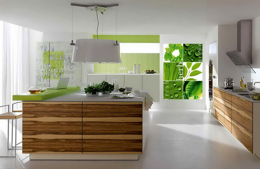 When decorating a kitchen, it should be remembered that wall murals are best combined with ordinary products, the shade of which is selected based on the nature of the image and the general mood in the room.