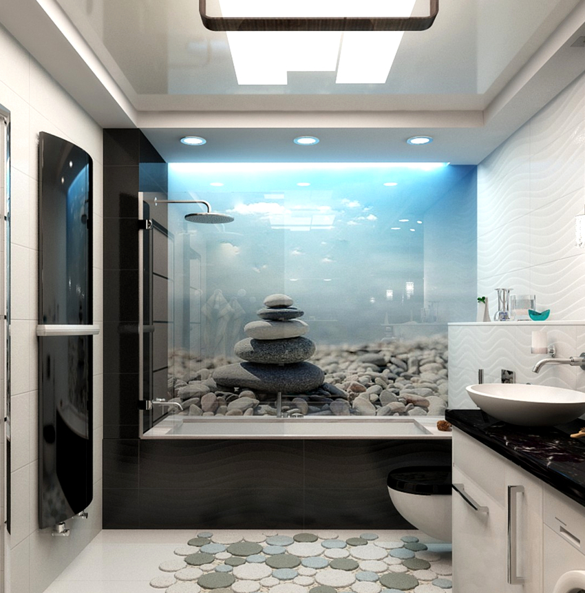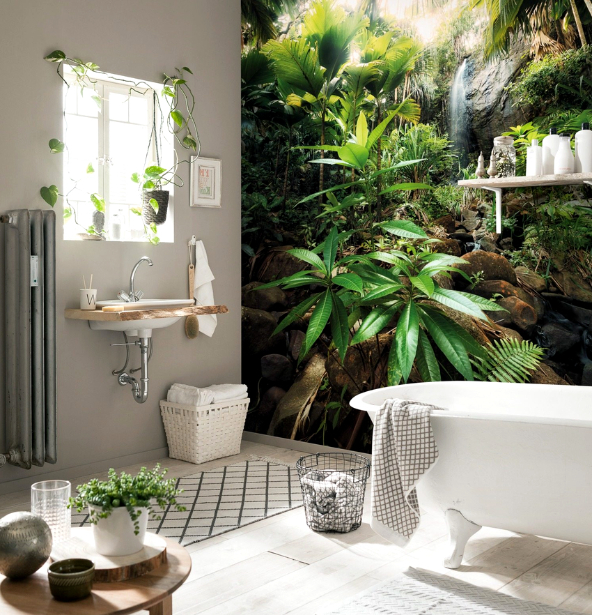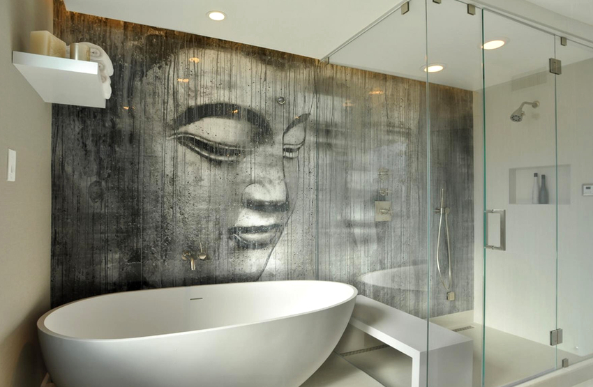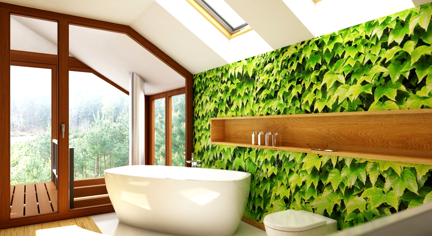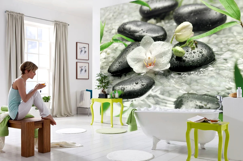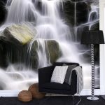 In the hallway, photo wallpaper will not only decorate the walls, but also contribute to the visual expansion of the space. Photo printing will create the same effect in the bathroom. Images of a waterfall look especially beautiful, but in a room with high humidity it is better to use tiles with an applied image, rather than paper wallpaper.