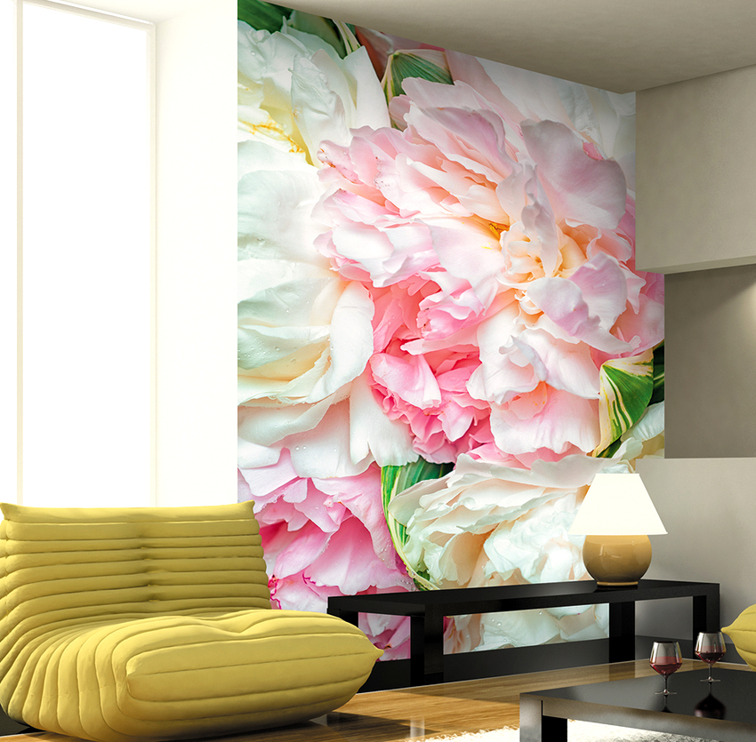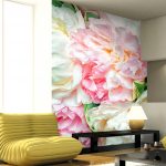 Wall mural peonies in the interior will create a calm atmosphere that brings dreams and thoughts. Therefore, such pictures are suitable for a bedroom, a room for children and a kitchen. These photo panels will add special harmony to light interiors. Designers advise using prints of this type to decorate the space above the bed or on one wall, which is previously freed from furniture.