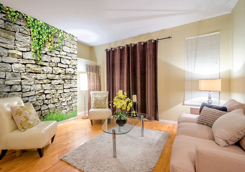 For small rooms, it is advisable to choose a light palette. Vertical paintings will contribute to the visual extension of the room in height, and horizontal paintings will expand the space. Textured designs that mimic stone, wood or brick can create the illusion of natural materials while conserving valuable space.