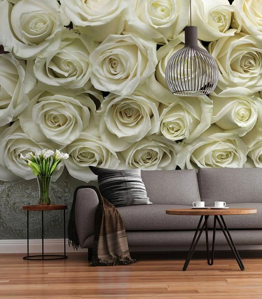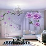The effect of presence will help to create petals with dew drops on 3D wallpaper in the interior. The photos show that most often it is one flower, shot using the macro method. According to the feng shui masters, it is the rose, being the talisman of love and passion, that is able to concentrate positive energy in the house. Therefore, this option is especially suitable for those who are trying to establish their personal life or start a family.