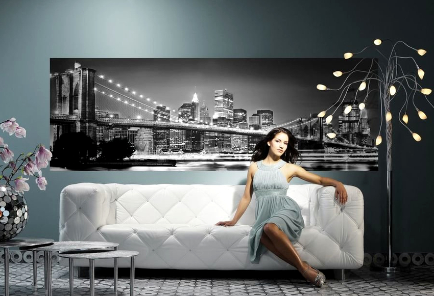 To create a successful design in a room, it is important not only to choose a picture of photo wallpaper, but also to take into account their compatibility with furniture, decor items and the functional purpose of the room. And also you need to decide on the location of the photo wallpaper. An interior with bright furniture and decorative elements is recommended to be decorated with black and white photos.