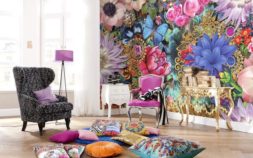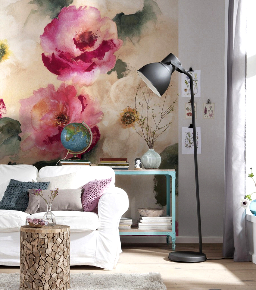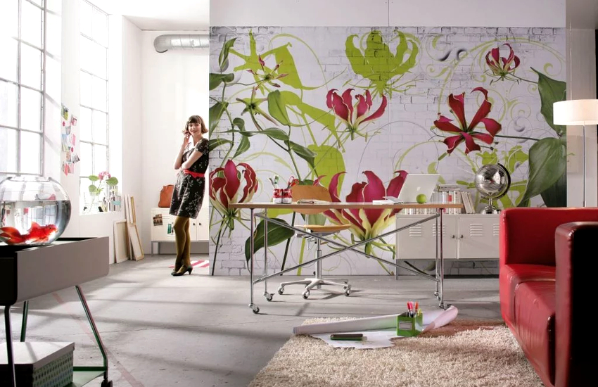 The versatility and eccentricity of photowall-paper flowers: photos of beautiful interiors