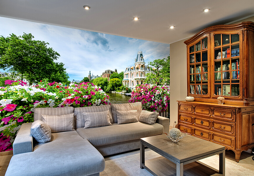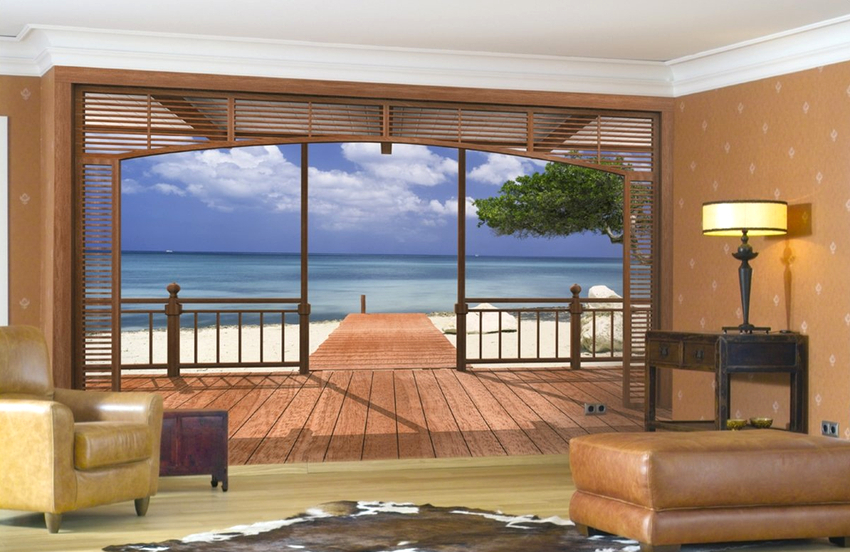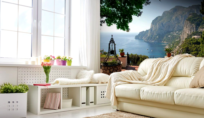 Photo wallpaper imitating the view from the window will help create coziness and comfort in the house. This option is especially relevant for rooms with a limited supply of natural light. In addition, such canvases will help to visually enlarge the space, while conveying the dynamism of the metropolis, the beauty of a spring garden or the relaxing atmosphere of the sea coast. These wallpapers are versatile, so they can be used in a variety of environments. In addition, if you could not find the desired option in the retail network, then you can make wallpaper to order.