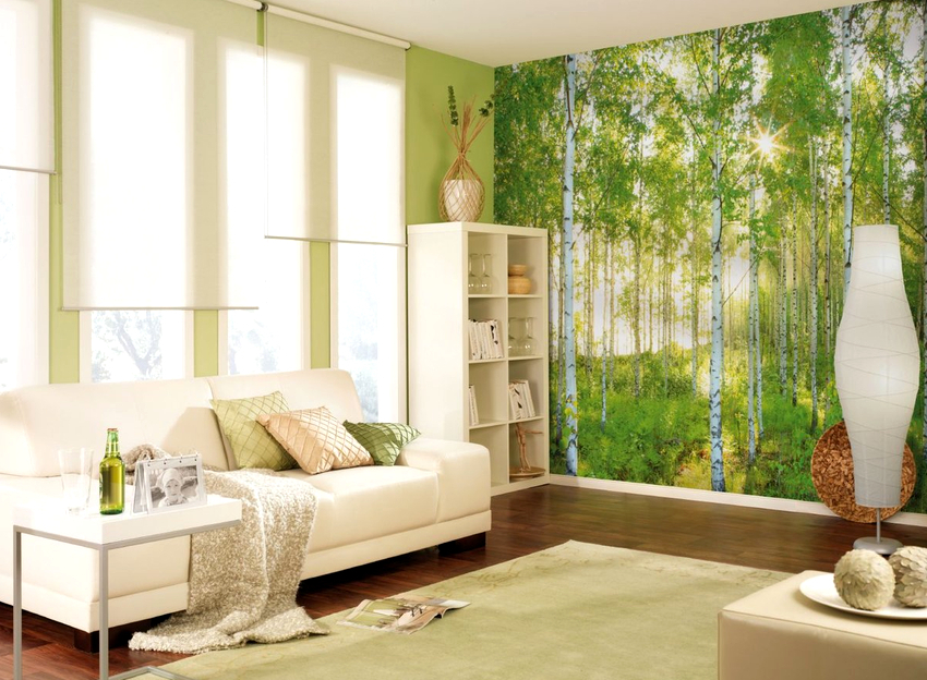 - 2.1 Natural theme in the interior: wallpaper forest, mountains, meadows and fields