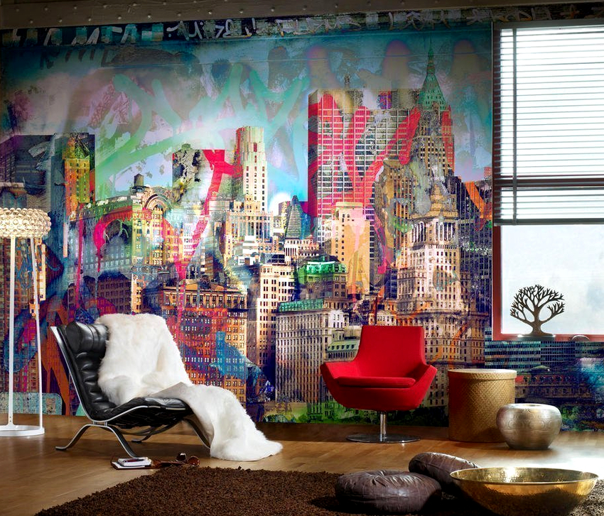 - urban motifs perfectly complement the urban style, giving dynamics to both the living room and the teenage room.