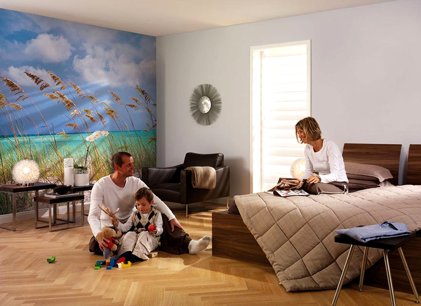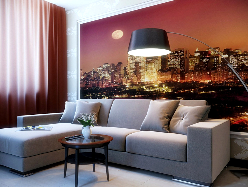 To create a beautiful design, you need to choose a picture of the photo wallpaper so that it matches the furniture
