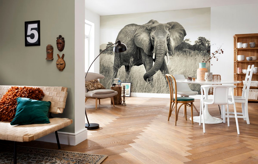 - animal photographs, despite their popularity, require caution in use, therefore, they are appropriate, for example, in the safari style;