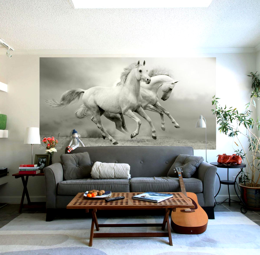 The living room is considered a good option for placing photo wallpaper, here you can embody any ideas