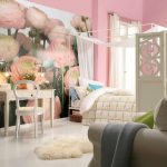 - photo wallpaper flowers in the interior of different rooms is one of the most popular modern themes: they are suitable for the living room, for the nursery, and for the bedroom;