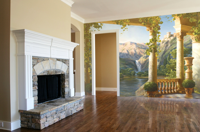 A similar role in the interior can be played by photo wallpapers in the form of open doors, which will visually lengthen the room, creating a perspective. The use of frescoes and arches in photo canvases will help to beautifully complement the interior of rooms decorated in a classic style.