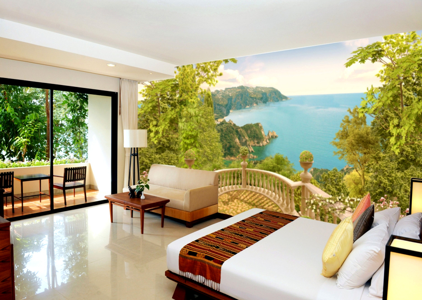 Picturesque landscapes fill the design of the room with the unsurpassed beauty of the surrounding nature