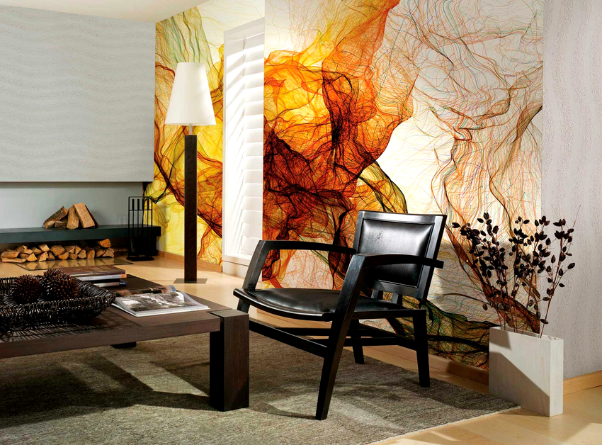 Abstract patterns on photo wallpaper are great for rooms made in modern styles such as high-tech, loft, minimalism. Most abstractions contribute to the visual enlargement of the room: for example, the image of a spiral extending into the distance creates a feeling of the infinity of space.