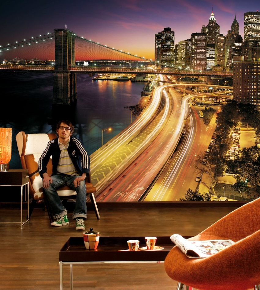 Wallpaper with different photographs of cities will fit most successfully into any modern interior. This is the most popular option for interior decoration using photo canvases. Urban landscapes will add dynamism to the room, and the night city wall murals in the interior will create a unique stylish and fashionable design. Photos of old streets, bridges and neighborhoods will be virtually transferred to your beloved country.
