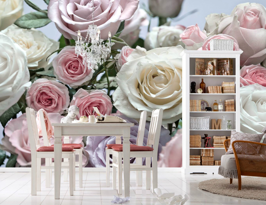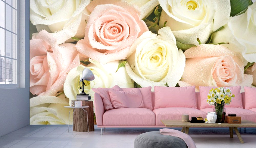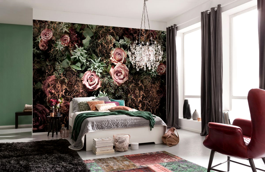 - 2.3 Photo wallpaper roses in the interior of different rooms and styles