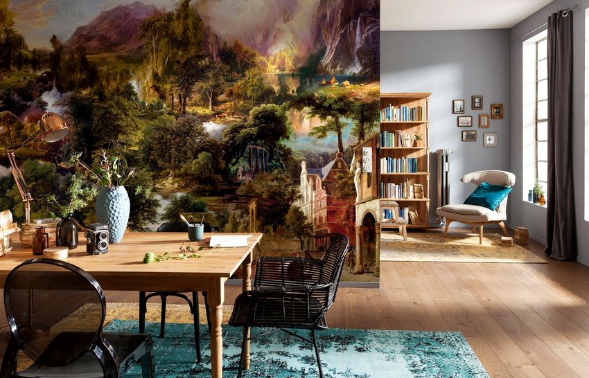 - to give harmony to the interior by choosing matching colors and shades on the photo wallpaper and companion wallpaper;