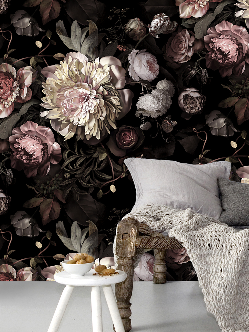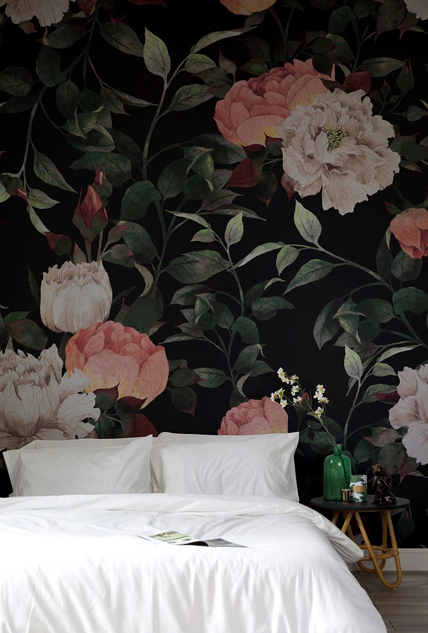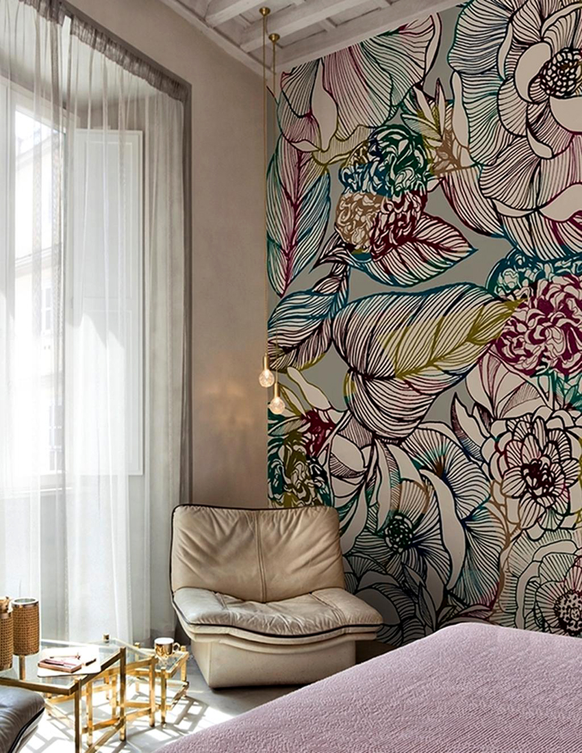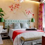 The next most popular after roses are peonies, whose voluminous flowers are associated with soft clouds. The bedroom, where such illustrations are present behind the headboard, is filled with cheerfulness and tranquility. In this environment, it will always be easy to relax and tune in to a positive day. Other flowers, images of which are often found in the interior of the bedroom: