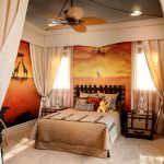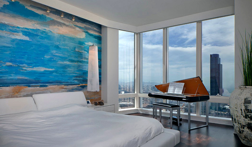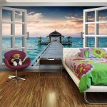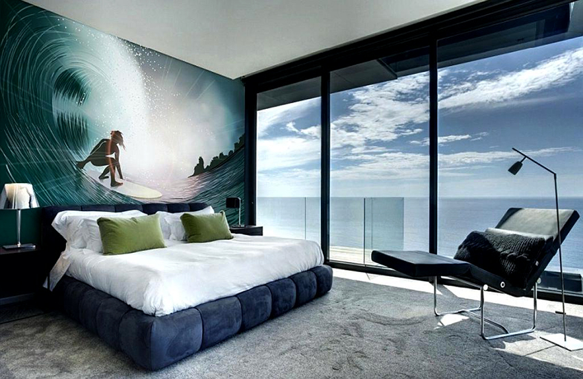 - By pasting wall murals depicting a balcony, terrace or ship deck on the sides of the window, you can create the effect of endless space and give the bedroom exclusivity.