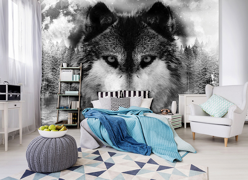 Animal lovers prefer to decorate the walls with images of graceful wildlife. Some people paste over the accent wall with a photo wallpaper depicting an animal in which a person was born (according to the Chinese calendar), especially if his behavior and character are similar to those of a person. Large images of such animals look very realistic: