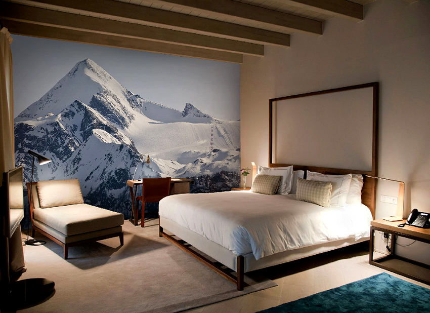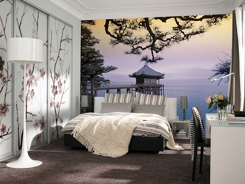 The interior will only then be individual and unique, if you are not afraid to transfer fantasy ideas to the walls. With the help of photowall-paper, without leaving your bedroom, you can visit a distant country, become a visitor to the sea coast and a conqueror of mountain peaks, and also constantly enjoy the flowering of beautiful plants.
