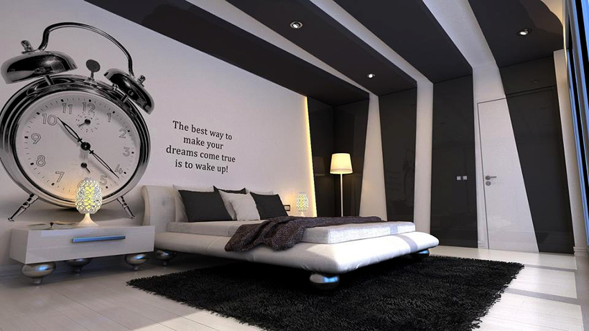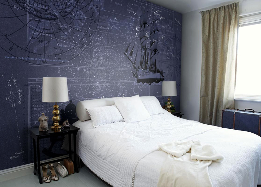 Useful advice! Modern technology allows you to create wallpaper with a glow effect that will help decorate your bedroom design with images of a bright starry sky or a spectacular glowing moon.