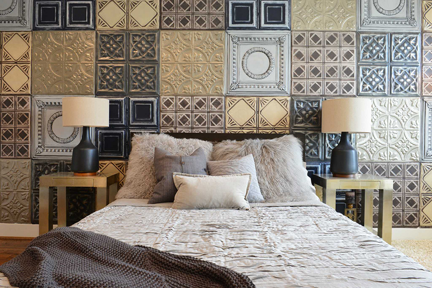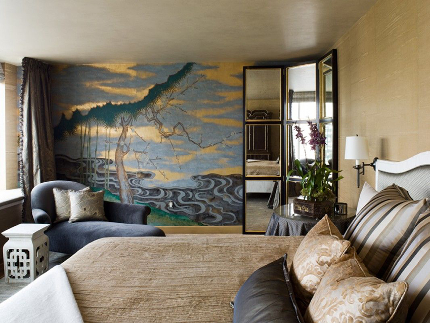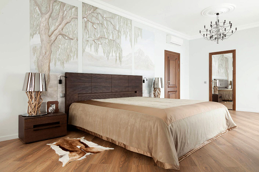 Plaster. A bedroom with murals for plaster looks the most impressive and expensive. With the help of canvases, you can create an imitation of a fresco, correctly place accents in the room. Wallpaper design is especially good for use in a room that wants to add the effect of antiquity or royalty. A bedroom with such wallpaper will always look graceful.