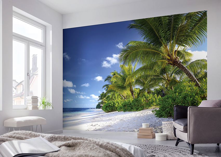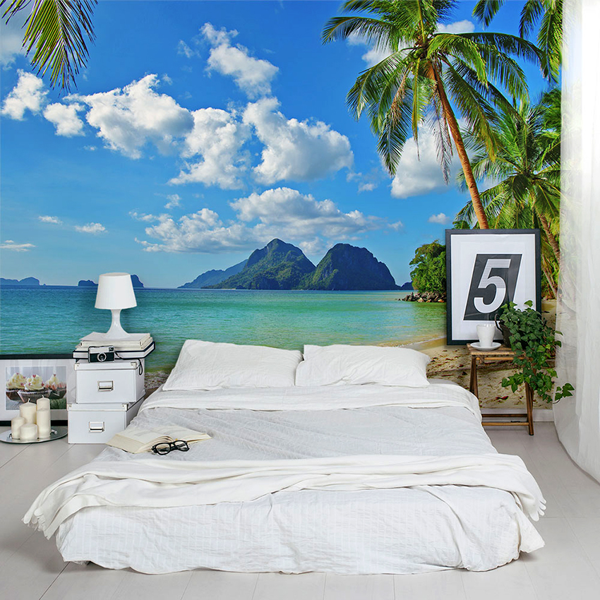 - A room with narrow walls can be visually expanded by pasting wallpaper with horizontal lines. A beach with a view of the sea will look good.