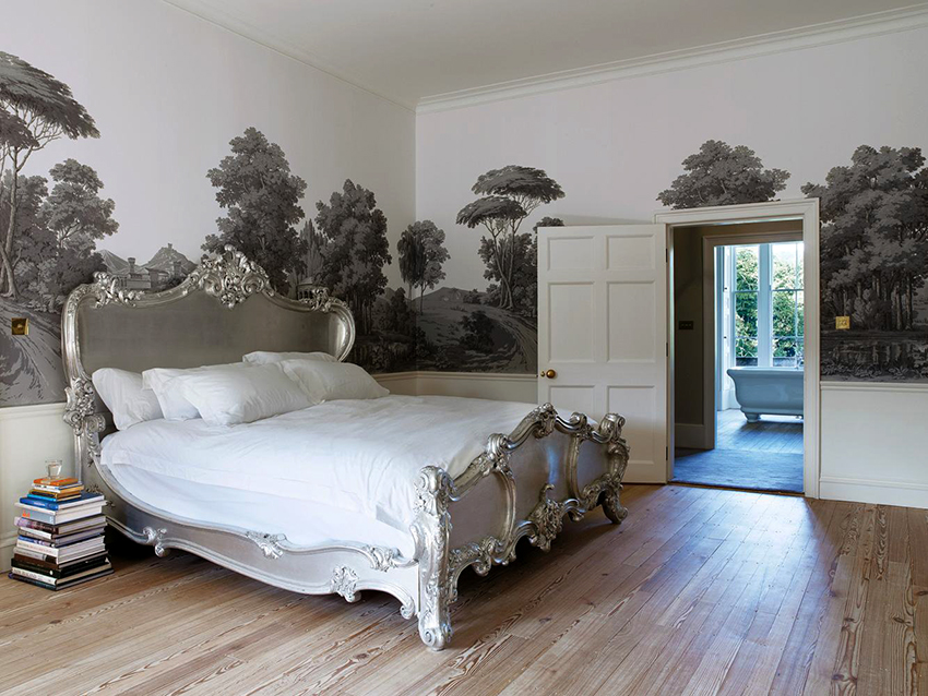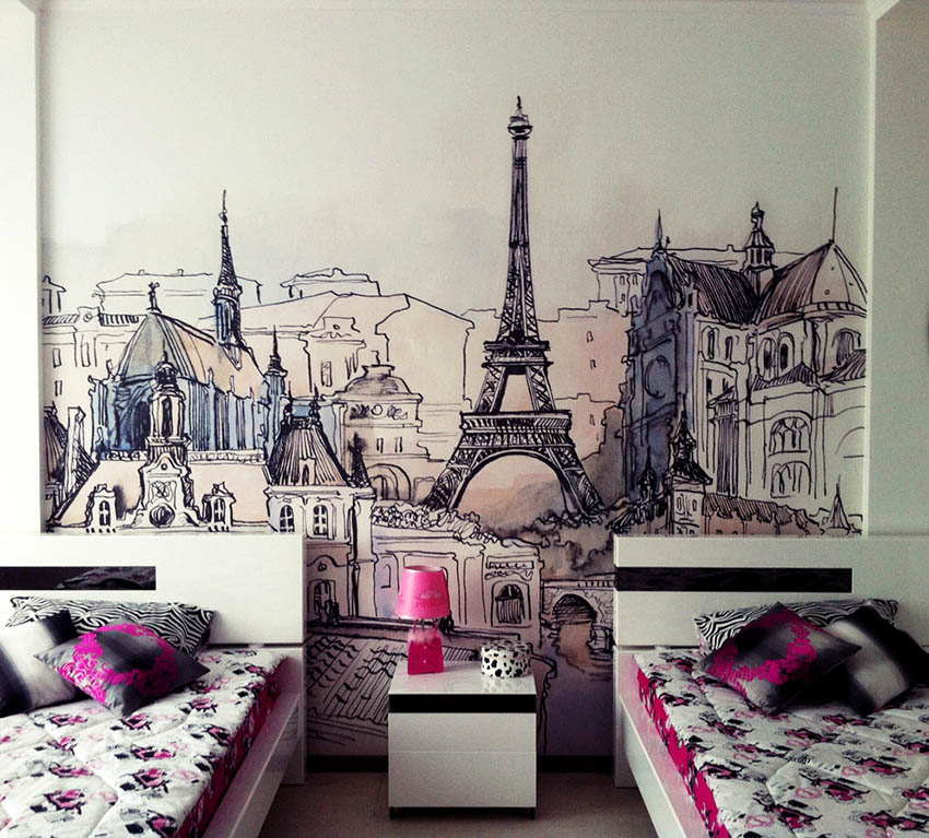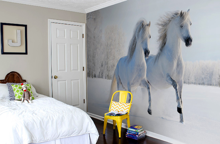 - Country. Here, wall murals with horses, parks, mountainous or rural landscapes are more common on the walls.
