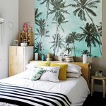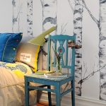 - If you need to visually expand the room, you should choose wallpaper in cold tones or canvas with monochrome images on a white background in a small bedroom. In a small room, wallpapers with illustrations on a blue or turquoise background also look good.