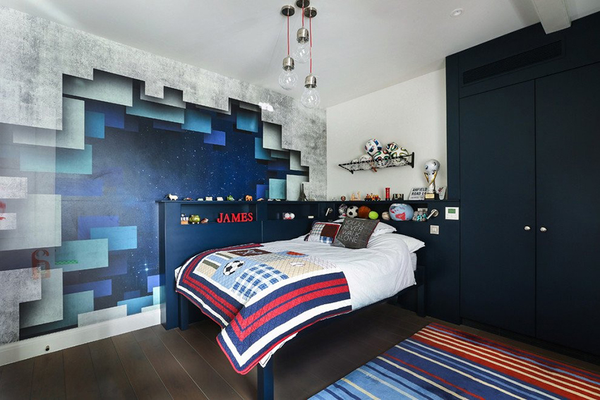 In a children's bedroom, you should not overload the space, therefore, to use photo wallpaper, you should select only one wall. Another advantage of this type of pasting is savings, because it will be quite costly to decorate all the walls with photo wallpaper. The most suitable places for wallpapering: