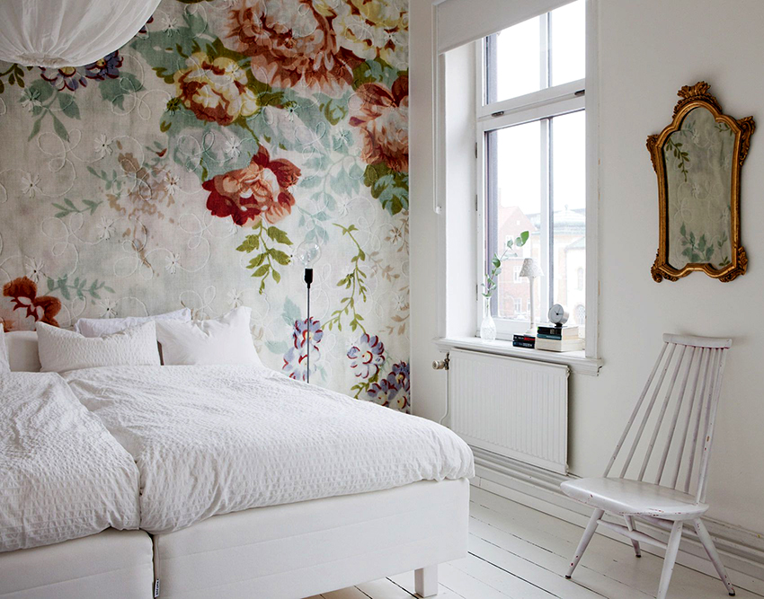 Flowers on the wallpaper can be either in the form of a photograph or painted; here it is already worth focusing on your own preferences and the style of the bedroom.